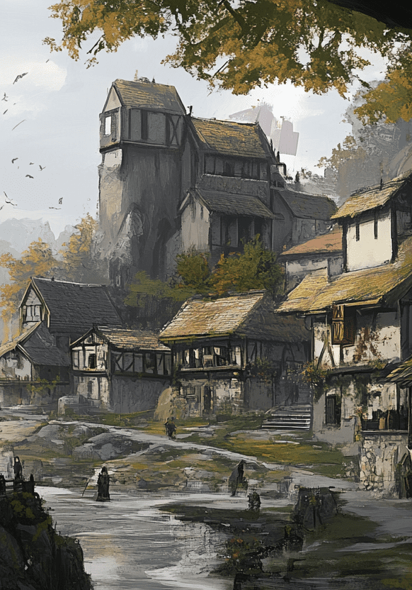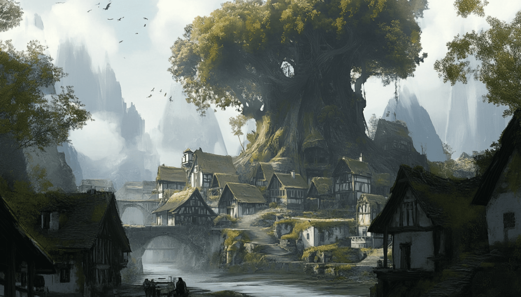 Les modestes maisons aux volets cloués se regroupent autour de la place centrale, serrées, comme pour se protéger des ombres de la forêt. Elles sont partiellement bâties sur les grands arbres difformes qui poussent en excroissances déviantes. Quelques produits locaux, herbes médicinales et pièces d’artisanats peuvent être trouvés dans de modestes boutiques.