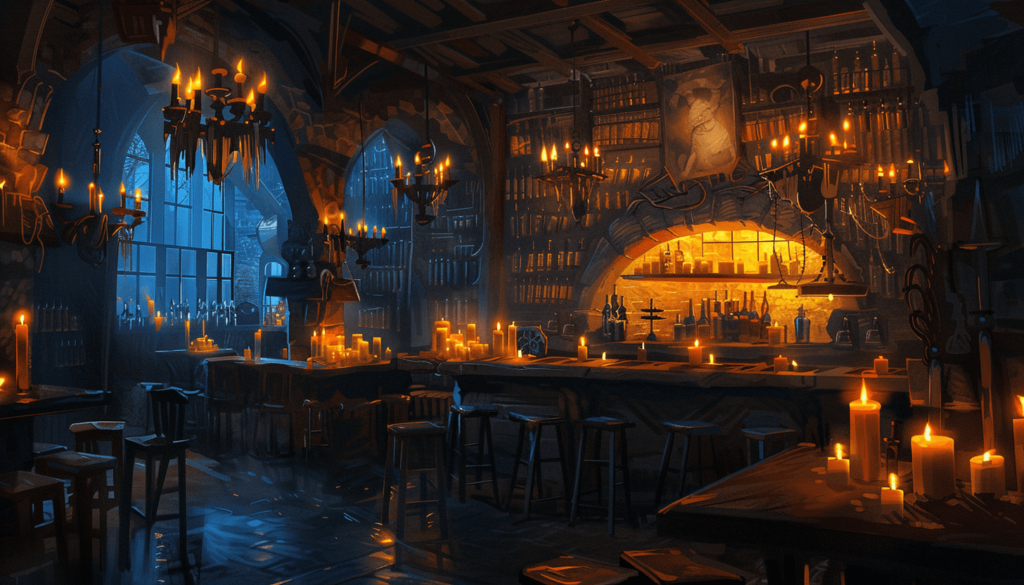 À la lisière des ruelles crasseuses du bas-quartier se dresse une façade de bois sombre sculpté et de vitraux teintés de rouge, où la lumière feutrée des lanternes appelle à la tentation. Derrière ses portes capitonnées, l’établissement déploie un faste qui contraste avec la misère de l’extérieur: des tapis ornementés étouffent les pas, des lustres en cristal éclairent des alcôves drapées de soie écarlate, et l’air, chargé de parfums d’encens et de vin épicé, embaume la luxure.