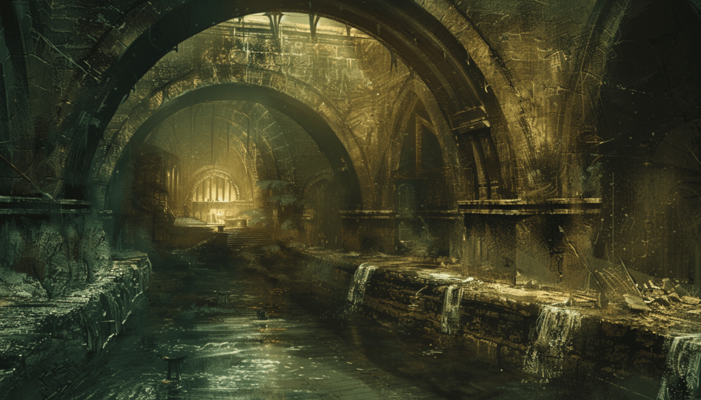 Un réseau d’égouts abandonné, labyrinthique et encore peu exploré s’étend sous la ville. Il semble avoir été abandonné depuis plus de 400 ans.